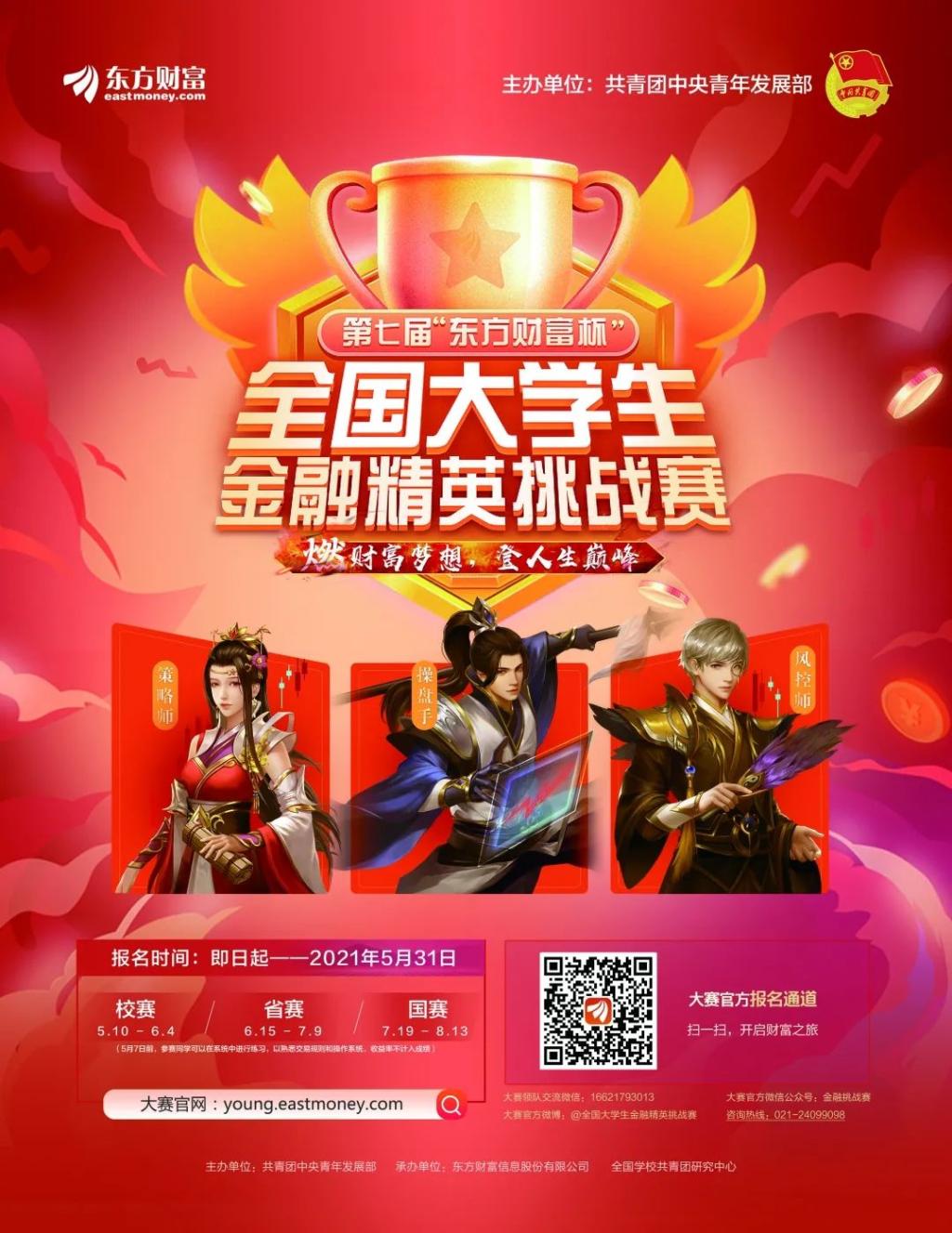 国赛由团中央青年发展部主办,东方财富信息股份有限公司、全国学校共青团研究中心承办。