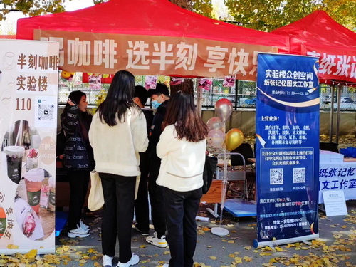 新奇有趣的创意产品、个性化的体验活动吸引了大批师生驻足。在现场工作人员的引导下,学院领导来到创业团队展位前,倾听了各个团队的经营情况介绍,针对项目选择、产品定位、项目营销等问题与创客们展开交流,并鼓励大家要把握机遇、脚踏实地、勇于创新,让每个创业者的“微行为”汇聚成创新创业的“众力量”。