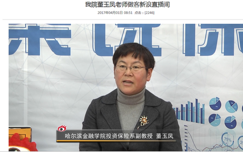 解读金融法规政策,为行业发展、经济生活建言献策。学院金融、保险、税收、法律专业教师多次做客黑龙江电视台第七频道《话龙点经》、黑龙江电视台公共频道消费30分、新浪直播间等新闻媒体。中国保险报、黑龙江日报、哈尔滨日报、伊春日报等报刊报道引用教师相关成果,助力金融行业企业高质量发展。10名教师成为“省金融学会经济金融智库”等机构特聘专家,为地方经济社会发展提供智力支持。