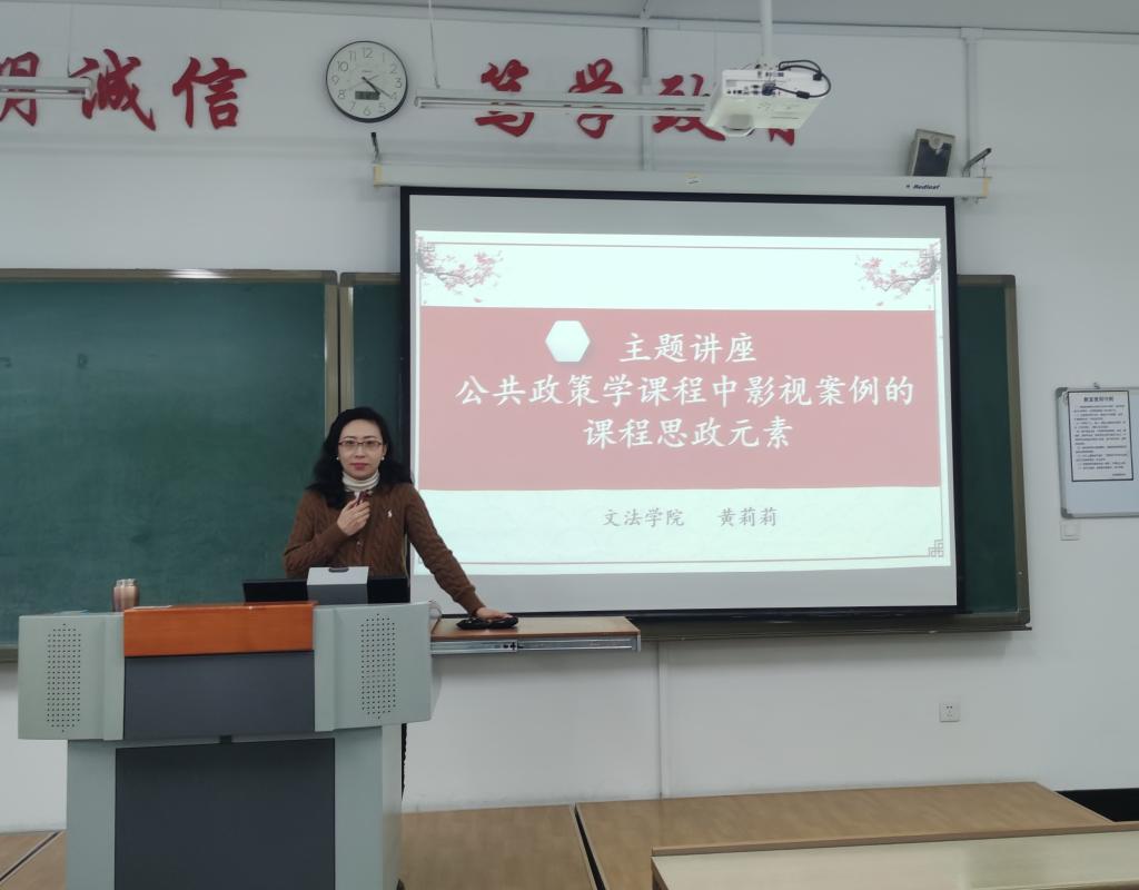 3月12日下午,在综合楼306教室举办了公共政策学课程相关讲座。本次讲座邀请文法学院黄莉莉老师做了题为《公共政策学课程中影视案例的课程思政元素》的专题讲座,来自不同院系的近八十名学生参加了本次讲座。