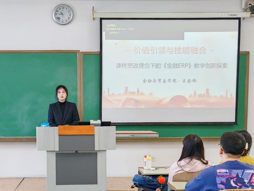 2025年11月25日,哈尔滨金融学院金融与贸易学院主办的“课程思政”建设项目成果推广讲座在综合楼202教室顺利开展。本次活动由该院王会钧副教授主讲,聚焦其主持的《基于课程思政理念的<金融ERP>教学改革与实践》项目,以“价值引领与技能融合:课程思政理念下的《金融ERP》教学创新探索”为主题,吸引了各学院师生积极参与。