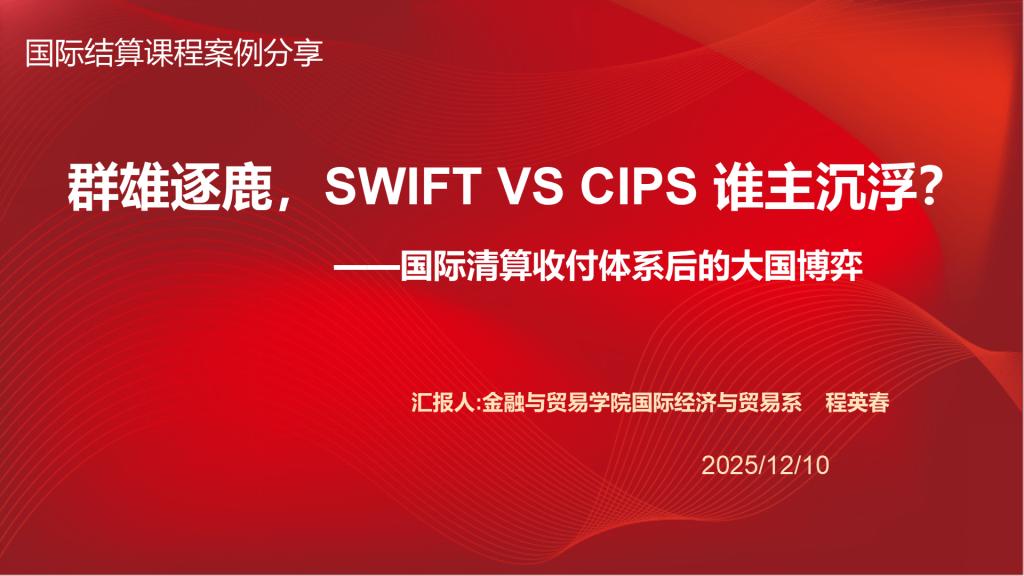 程英春老师以线上形式进行分享,围绕SWIFT与CIPS的国际清算体系对比,设计出以“大国博弈”为背景的课程思政案例。汇报从案例背景、核心设计、教学组织、教学效果、混合式教学实施流程及案例创新点六个维度系统展开,引导学生深入思考金融自主与国家安全之间的战略关联。在案例教学实施中,着力提升学生认知层次与实践能力,实现专业知识与思政育人的“双提升”。