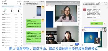 网络教学,教师最难监管的就是学生的学习状态。学生稍微松懈就可能出现延迟进入直播教室、听课时溜号玩手机、课后不及时跟进复习等情况。为此会计学专业全体任课教师仔细琢磨教学管控方法、定期交流网络教学经验、分享网络教学心得。总结提出“三三制原则”,即课前提前3分钟签到、课堂视频互动交流3分钟、课后3个小时内上传作业答案,以此保证对学生学习的全过程管控。