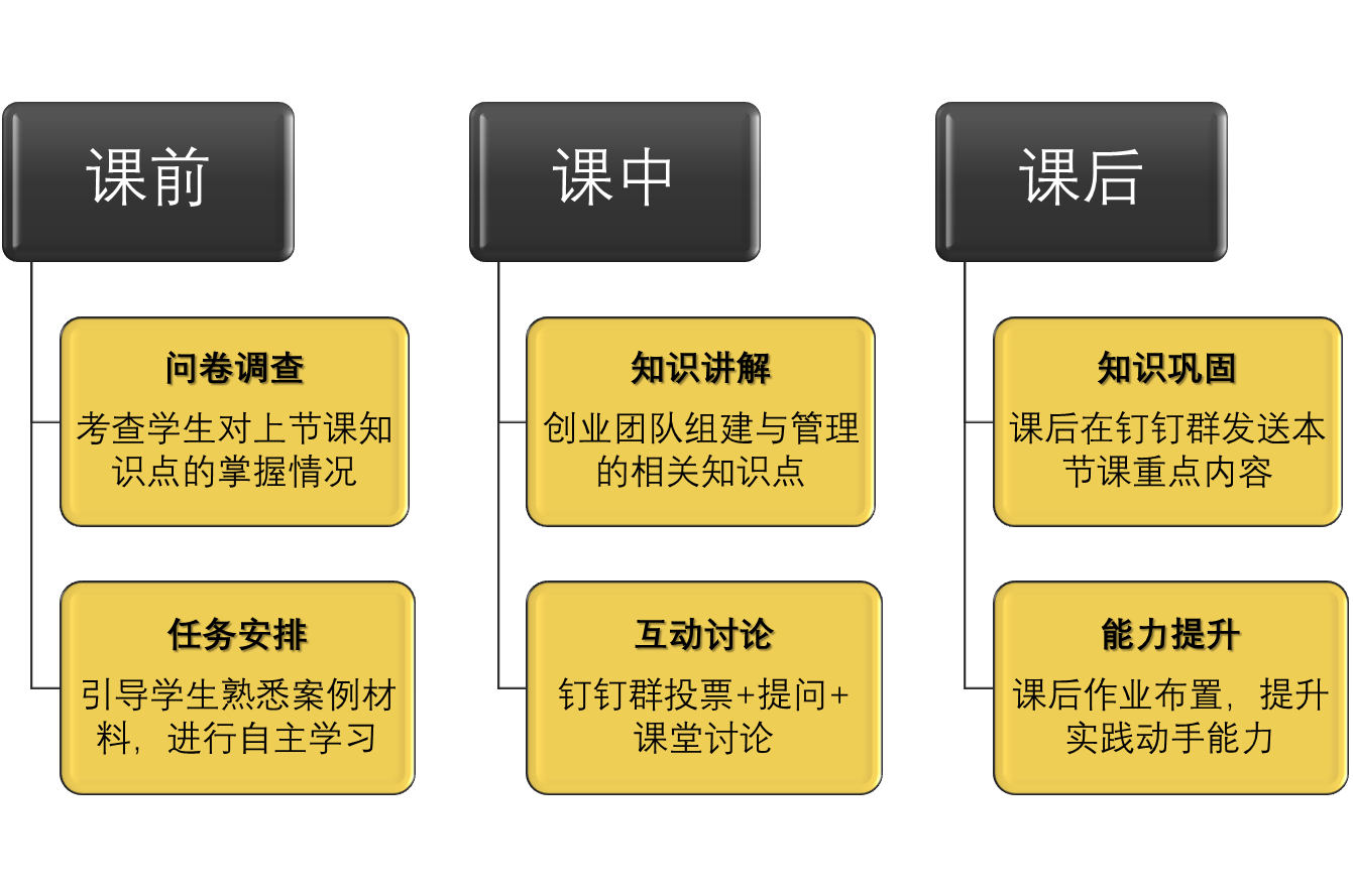 授课对象为2019级人力资源管理专业学生,上课人数为30人,该专业学生已在前期完成了《职业规划》、《管理学》等通识教育课程,学习了《人力资源管理》等相关的专业课程,因此在本课程中注重将创新创业的知识与其专业理论知识进行结合。