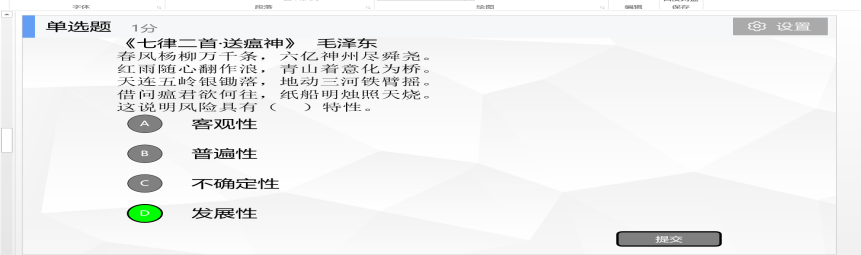 我们在授课过程中构建实时提问、实时回答、课堂讨论、讲完就测、测完补充的机制等进行课堂管理,但是我们发现主观题讨论环节,学生参与的人数不多而且每次都是那几个学生,课堂活跃度有限,学生喜欢选择题等客观题,所以我们通过雨课堂将部分讨论题采用客观题的方式,让学生作答,这样能做到90%多的学生参与到教学中,对于未能参与的学生,能及时了解情况,如图5所示。